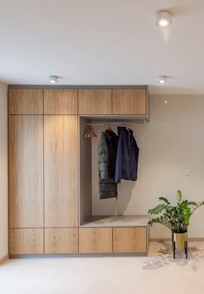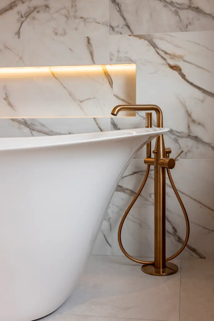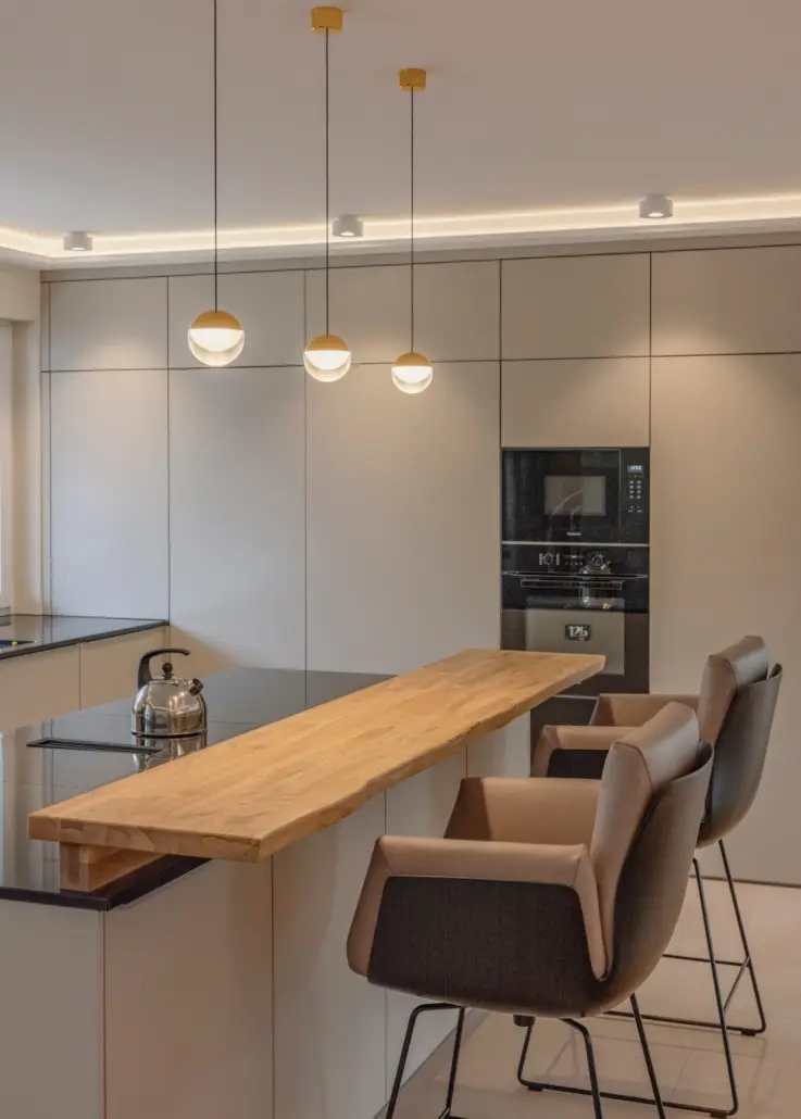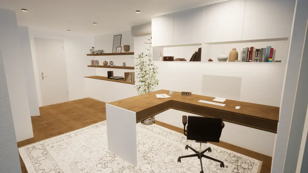 Im Obergeschoss setzt sich die klare Struktur fort: Zwei Kinderzimmer mit eigenem Kinderbad bieten funktionale und zugleich helle Rückzugsorte. Ein weiteres Arbeitszimmer öffnet sich zur Terrasse und ermöglicht vielfältige Nutzungsszenarien. Der Elternbereich ist als ruhige Einheit konzipiert – mit einem Schlafzimmer, dessen maßgefertigte Schrankelemente als Raumteiler fungieren, sowie einem großzügigen Bad en suite mit freistehender Badewanne.